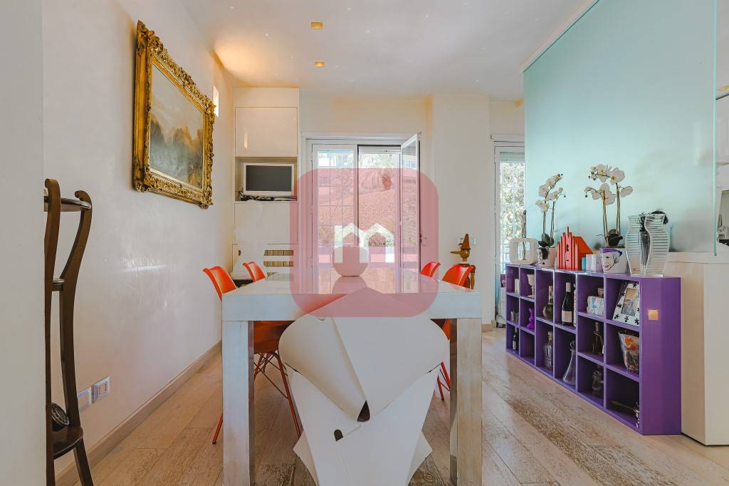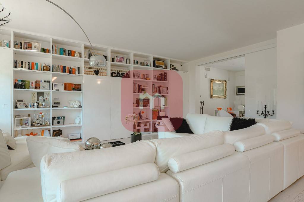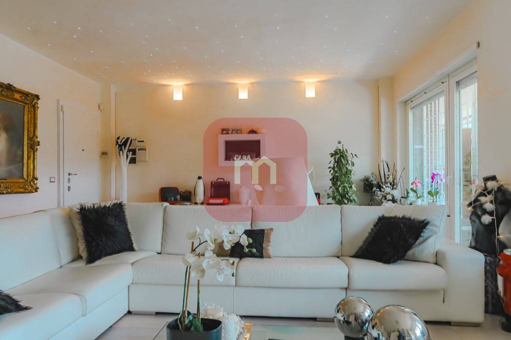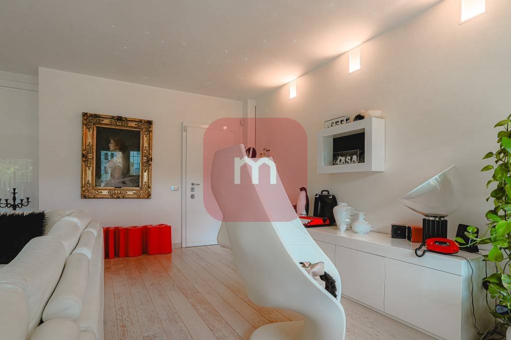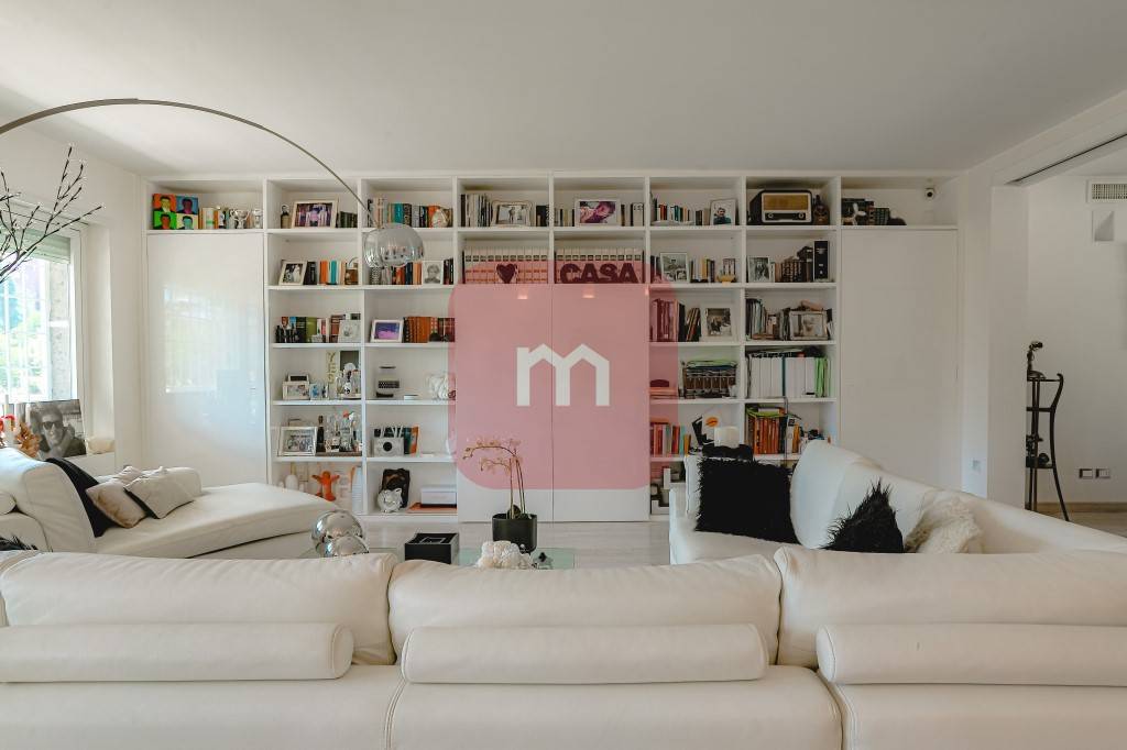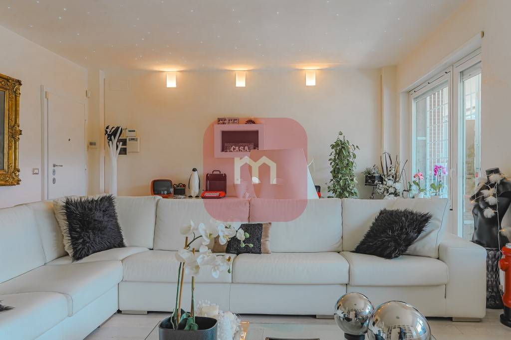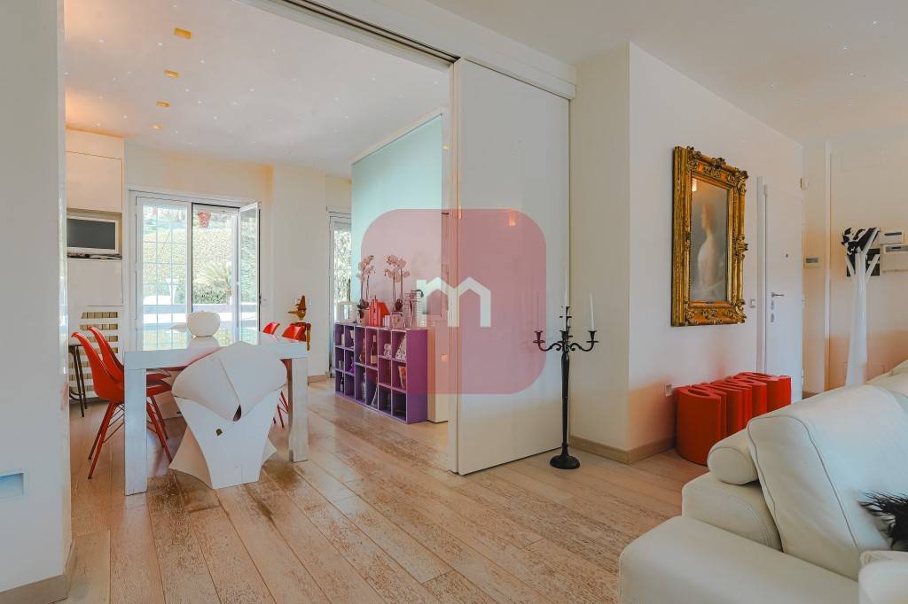 L'appartamento si sviluppa in 177 mq (secondo piano) + 50 mq (primo piano) di taverna al piano sotto, così suddivisi: salone doppio dal quale si accede ad un terrazzo di 15 mq ca, tre camere da letto e una cameretta, tre bagni, angolo cottura e soggiorno con accesso all'ampio giardino in parte mattonato ed in parte verde, che ospita vari spazi conviviali, tra questi una bella piscina ed una rilassante vasca Iacuzzi.
