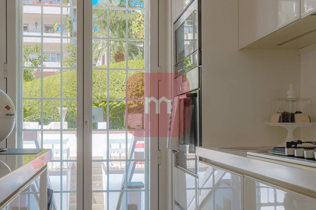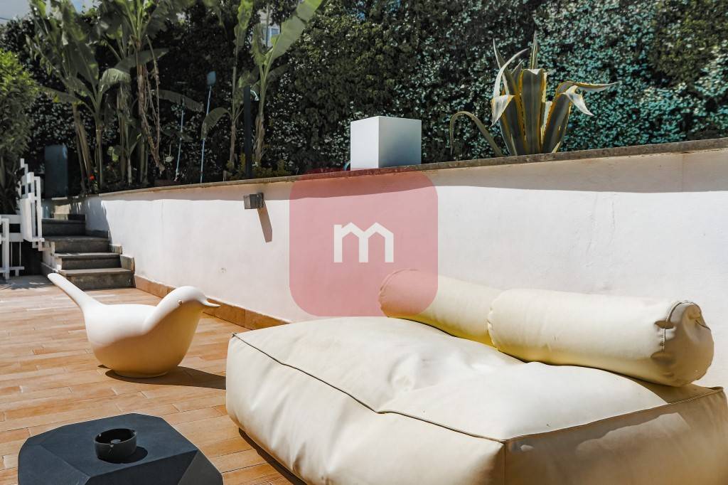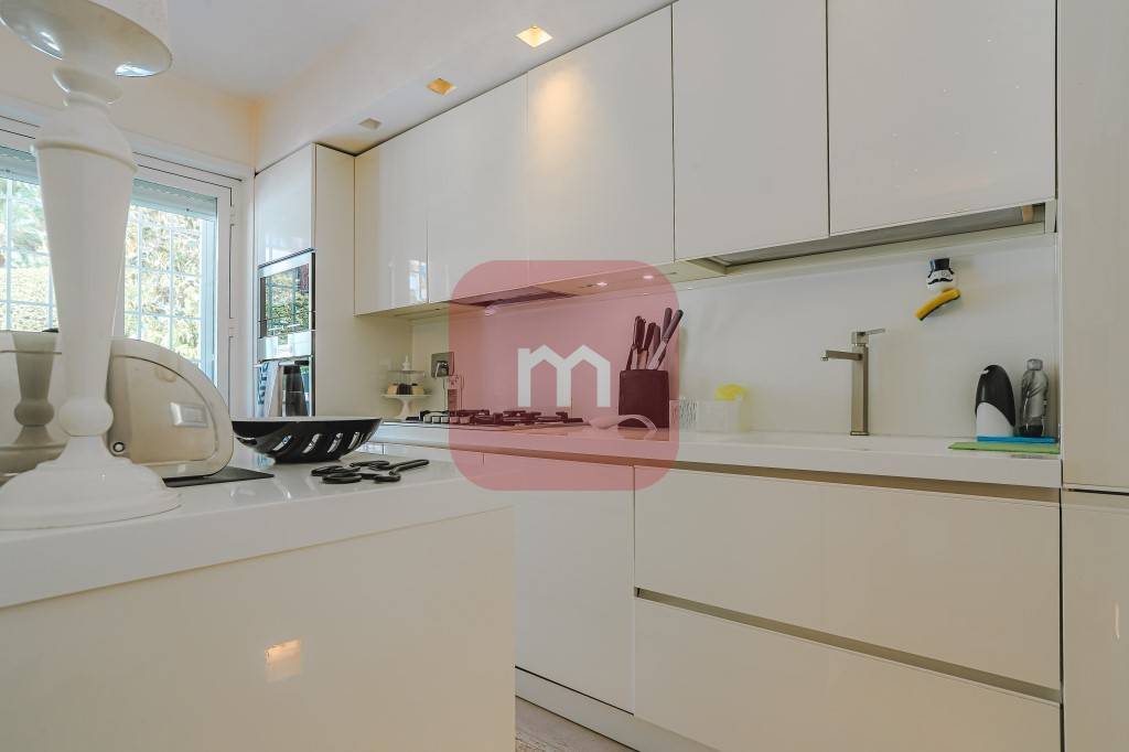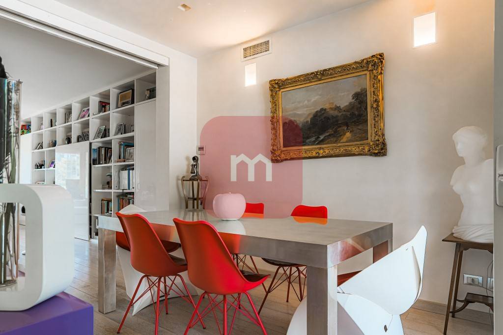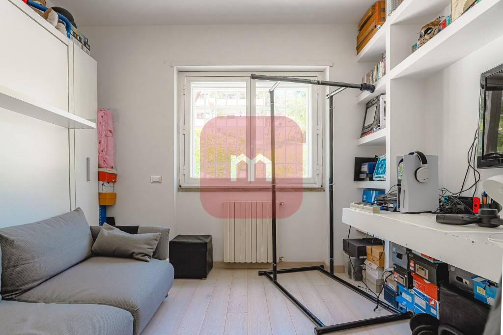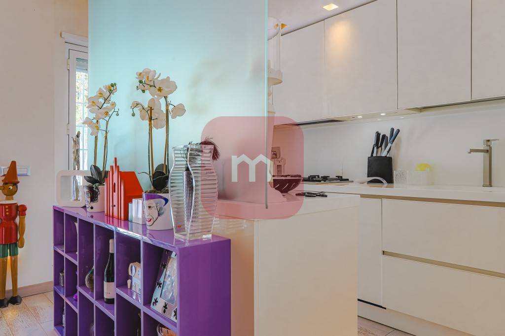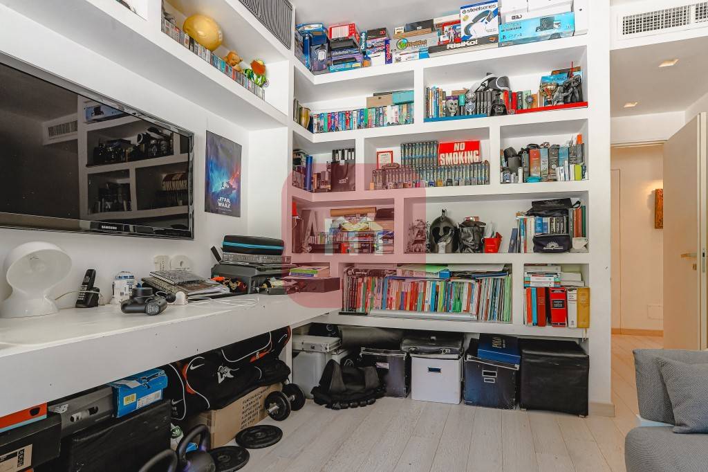 L'appartamento si sviluppa in 177 mq (secondo piano) + 50 mq (primo piano) di taverna al piano sotto, così suddivisi: salone doppio dal quale si accede ad un terrazzo di 15 mq ca, tre camere da letto e una cameretta, tre bagni, angolo cottura e soggiorno con accesso all'ampio giardino in parte mattonato ed in parte verde, che ospita vari spazi conviviali, tra questi una bella piscina ed una rilassante vasca Iacuzzi.