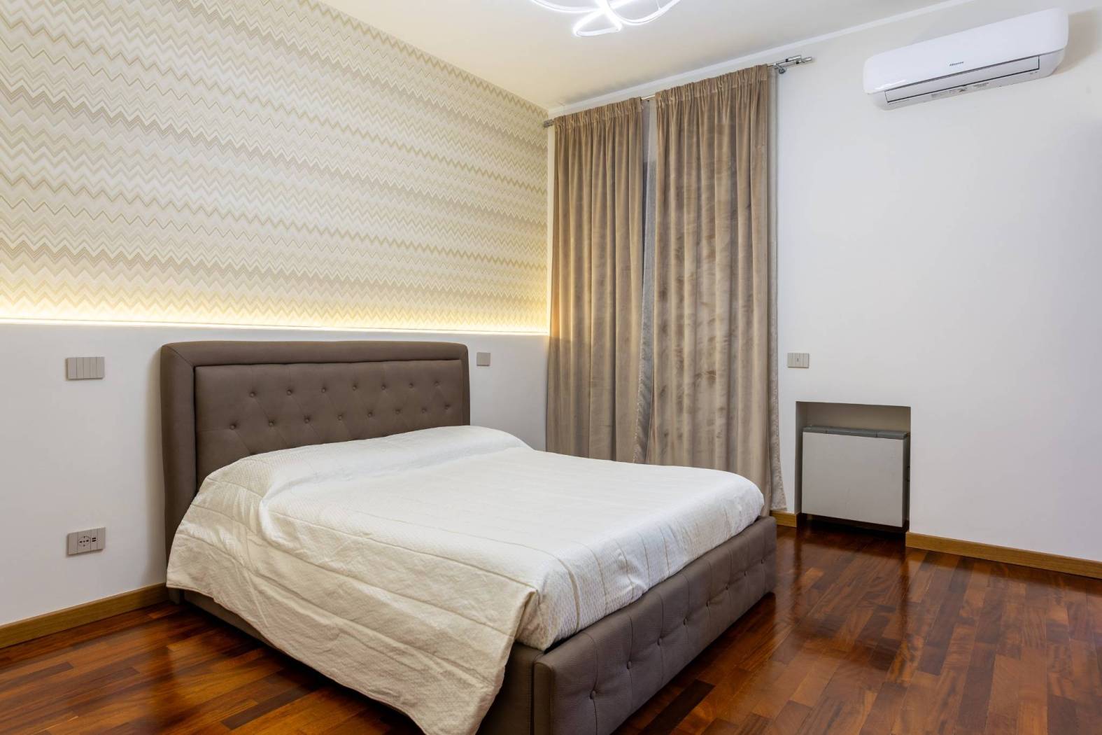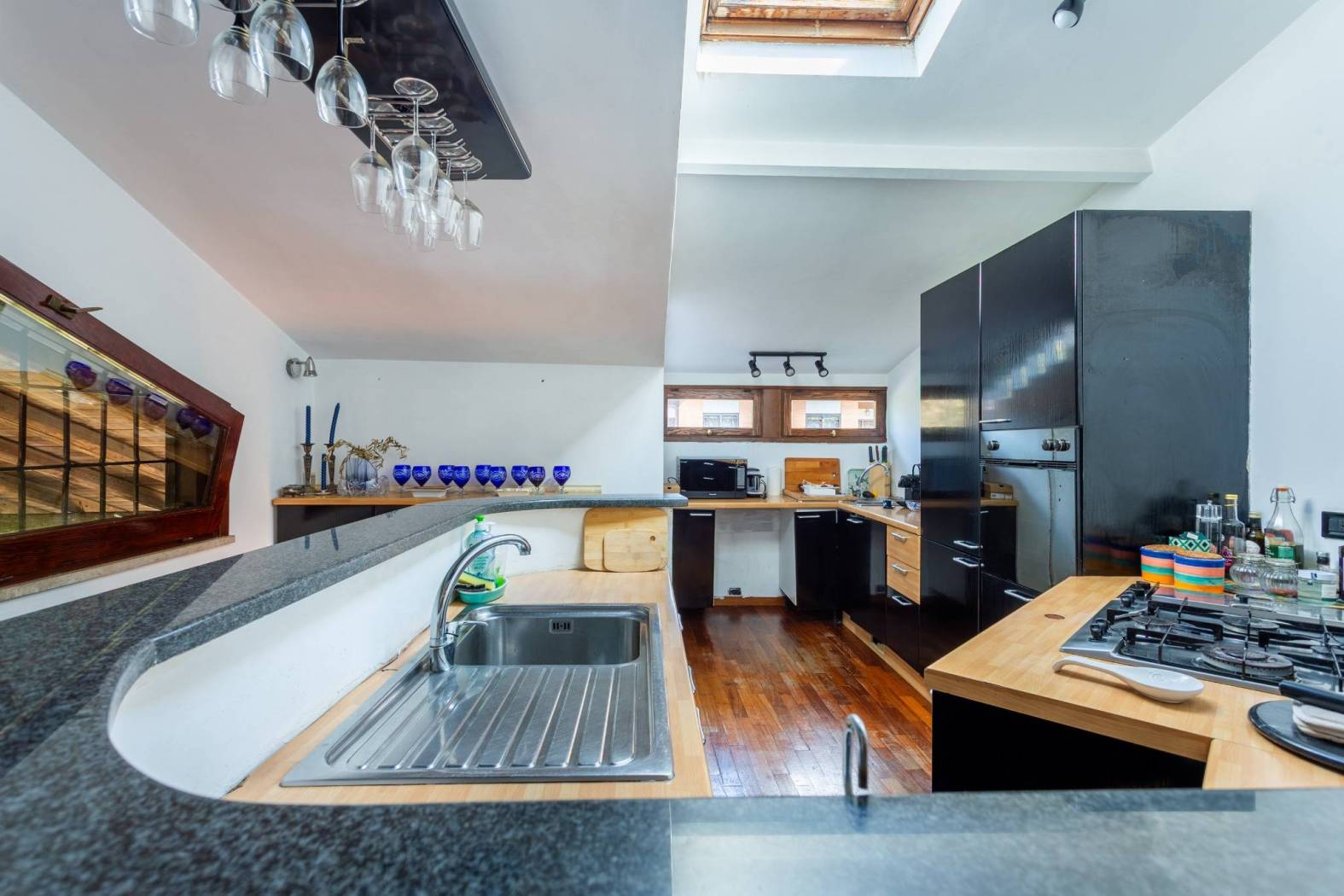 L'abitazione più piccola, distribuita su un unico livello al piano primo,è composta da salone doppio con camino, cucina abitabile e bagnetto di servizio nella zona giorno e nella zona notte da una camera padronale con un ampia sala da bagno con vasca idromassaggio, una stanza matrimoniale una cameretta e un bagno. La casa si affaccia su un raffinato giardino terrazzato. Alla proprietà sono legati un ampio garage di circa 60mq ed una cantina di 25mq